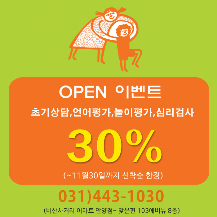 ÇöÀç OPENÀ̺¥Æ®·Î Ãʱâ»ó´ã, ¾ð¾îÆò°¡, ³îÀÌÆò°¡, ½É¸®°Ë»ç 30% ÇÒÀÎÀ̺¥Æ®¸¦ ÁøÇàÁß¿¡ ÀÖ½À´Ï´Ù.